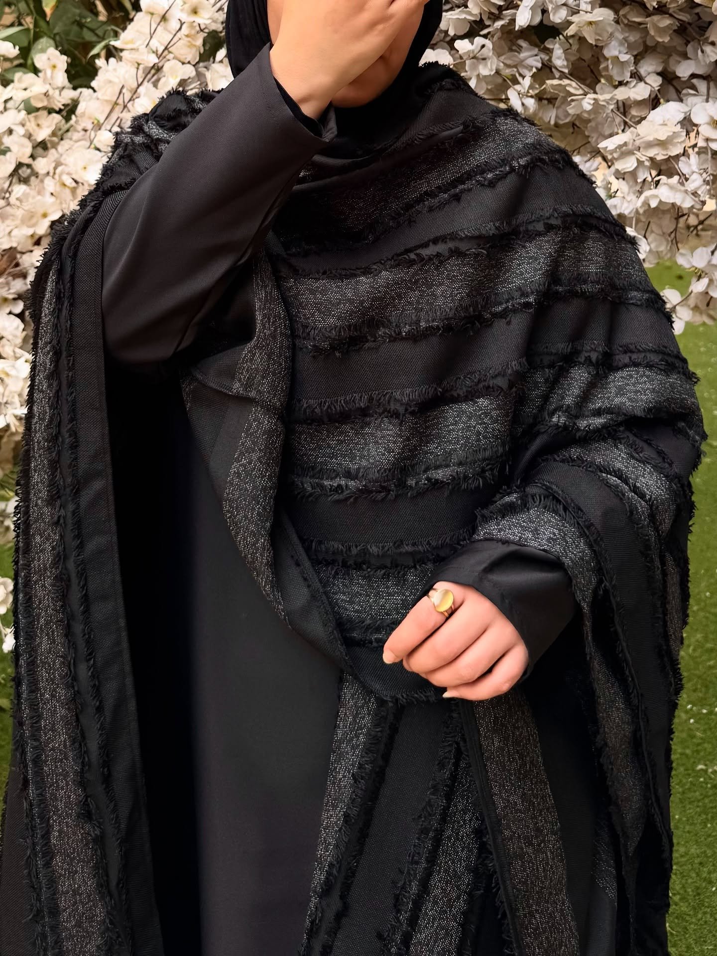 استمتعي بإطلالة راقية تجمع بين الفخامة والاحتشام مع هذه العباية السوداء المصممة بعناية لتمنحك حضورًا مميزًا في كل وقت.